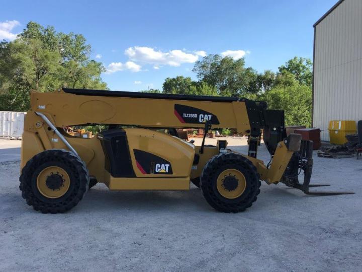 2015 Caterpillar TL1255D Telehandler; CAT C4.4 Tier 4f Diesel Engine; 4 Speed Powershift Transmission; Enclosed Cab with Heater/Air Conditioning ; Engine Block Heater; 14.00-24 Solideal Tires; Hydraulic Quick Coupler